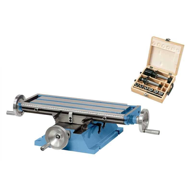 Kreuztisch und Fräseraufnahme mit Spannzangen 6 - 16 mm 8-tlg. für Schnellradialbohrmaschine SRB 40