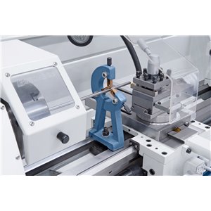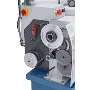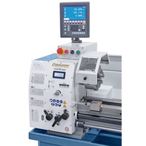 Drehmaschine Profi 900 Vario mit 2-Achs Digitalanzeige ist serienmäßig mit Leit- und Zugspindel und Delta-Frequenzumrichter für hohes Drehmoment im unteren Drehzahlbereich.